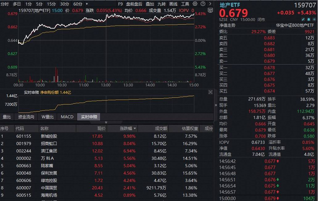 【“十年一遇大拐点”?龙头地产集体爆发,全市集独一地产ETF(159707)暴涨超5%,资金加仓1.44亿份!】