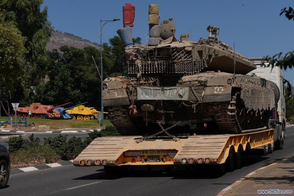 这是9月26日在以色列北部谢莫纳镇拍摄的输送中的以军坦克。新华社发(阿亚尔·马戈林摄/基尼图片社)