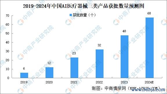 AI医疗器械三类居品注册准入步入常态化。中商产业接洽院发布的《2024-2029年中国医疗器械行业分析与投资讲明》自大,2023年中国AI医疗器械三类居品获批数目达到48个,同比增长50%。中商产业接洽院分析师预测,2024年AI医疗器械三类居品获批数目将达68个。
