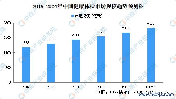 近几年,国民生流水平提高、健康不雅念潜入东谈主心,以及破钞升级,国民健康体检行业的商场需求繁盛。中商产业接洽院发布的《2024-2029年中国健康体检行业商场拜谒及出路分析讲明》自大,2023年中国健康体检商场规模达2336亿元。中商产业接洽院分析师预测,2024年中国健康体检商场规模将超2500亿元。