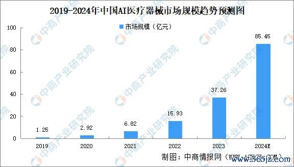 面前,中国AI医疗器械行业一经迈入贸易化初期阶段,居品上市加快,诈欺场景合手续创新,领有中枢要道技巧的初创型企业也逐渐受到成本温煦。中商产业接洽院发布的《2024-2029年全球及中国医疗器械行业分析与投资讲明》自大,2023年中国AI医疗器械商场规模37.26亿元,跟着技巧卓绝、商场需求牵引、新兴商场主体阻抑知晓,瞻望2024年中国AI医疗器械商场规模将达到85.45亿元。