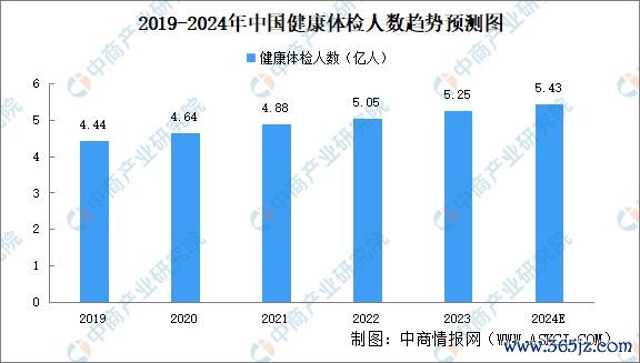 健康体检动作把稳的第沿途关隘,通过筛查赢得健康信息和风险隐患,或者率领后续把稳和健康惩办,在后续健康惩办、疾病把稳乃至扫数这个词生态链合作中起着至关遑急的作用。连年来,我国健康查抄率阻抑进步,健康体检东谈主数合手续增长。中商产业接洽院发布的《2024-2029年中国健康体检行业商场拜谒及出路分析讲明》自大,2023年中国健康体检东谈主数达5.25亿东谈主,中商产业接洽院分析师预测,2024年将增至5.43亿东谈主。