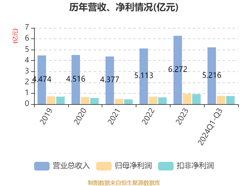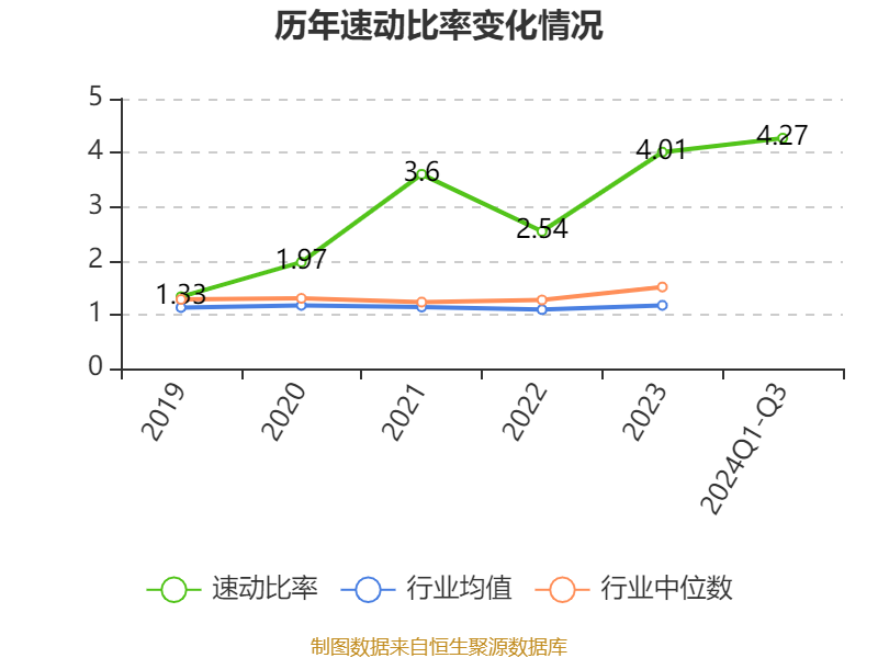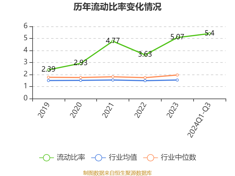 2024年前三季度,公司流动比率为5.4,速动比率为4.27。